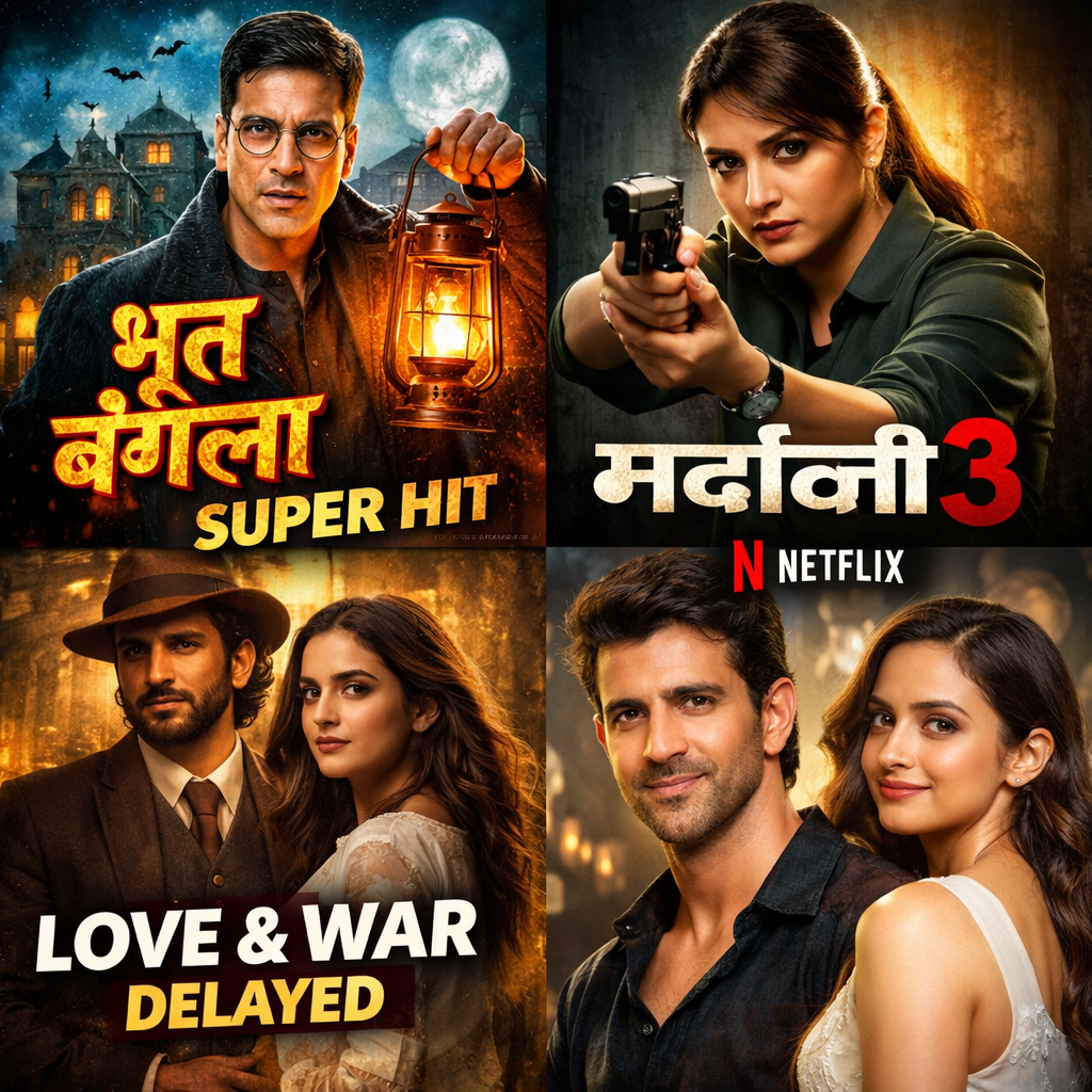 Entertainment News: ‘भूत बंगला’ का धमाका, ‘मर्दानी 3’ ट्रेंडिंग, ‘लव एंड वॉर’ टली